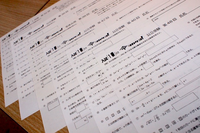 数学が苦手な子どもたちは、この25点が取れない。この25点は基礎だから、残す[2]〜[6]の応用問題も解けるハズがない。結局、60点満点中20点以下。そういう状態になります。「フ○ト」や「県○試」といった、入試そっくり模試の数学の問題で30点が取れない生徒は、例外なく数学の基礎ができていません。そのような子どもたちの数学を伸ばすには…。そう考えた結果、塾のオリジナル教材として、[1]にそっくりなドリル問題を作成して毎回させていたわけです。それを、生徒たちは「1番勝負!」と呼んでいました。